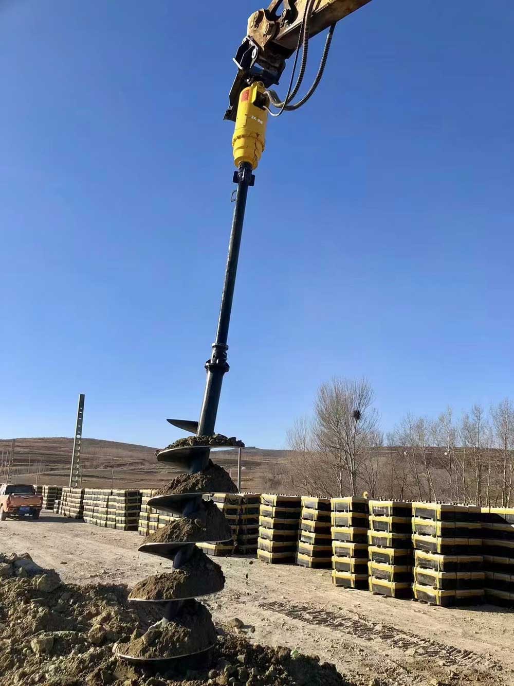 Excavator auger drill is applicable to most drilling projects such as construction piling drilling, photovoltaic power generation drilling, and tree planting drilling. Advantages: Drilling does not require soil cleaning, and one person can complete the work. After drilling to the depth, the drill rod is lifted, and the soil is attached to the spiral blades, and rarely falls back. After lifting, just turn the drill rod forward and backward to record the soil, and it will fall naturally. The auger drill can be operated by one person, and the hole can be completed as soon as the drill is completed, which greatly improves work efficiency. In the era of energy transformation, excavators, auger drills and pile drivers can be seen working together at photovoltaic construction sites across the country.