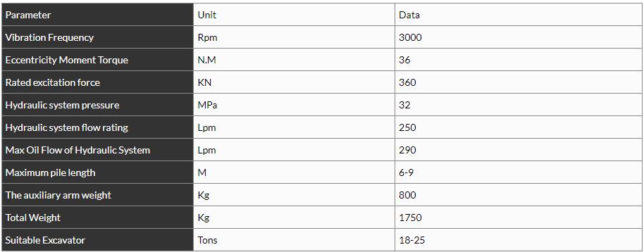 S350 Vibro Hammer Product Parameters